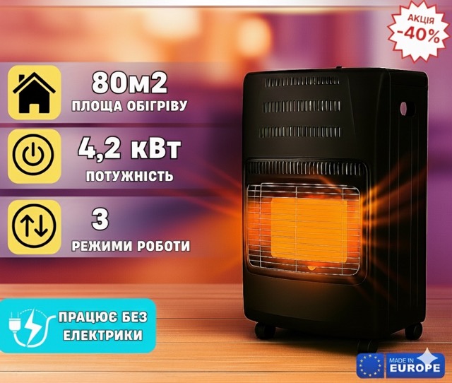 Забудьте про холод — потужний газовий обігрівач швидко наповнить теплом будь-яке приміщення. Ідеальний для дому, гаража, майстерні або дачі навіть у найлютіші морози.